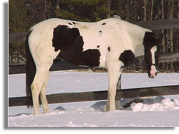 1995 black & white tobiano APHA mare by IMA MONEYMAKER TOO (APHA) out of APACHE FIRE MISS (APHA) by POCO APACHE BARS (APHA). Portland University tested homozygous mare for color and for the black gene.